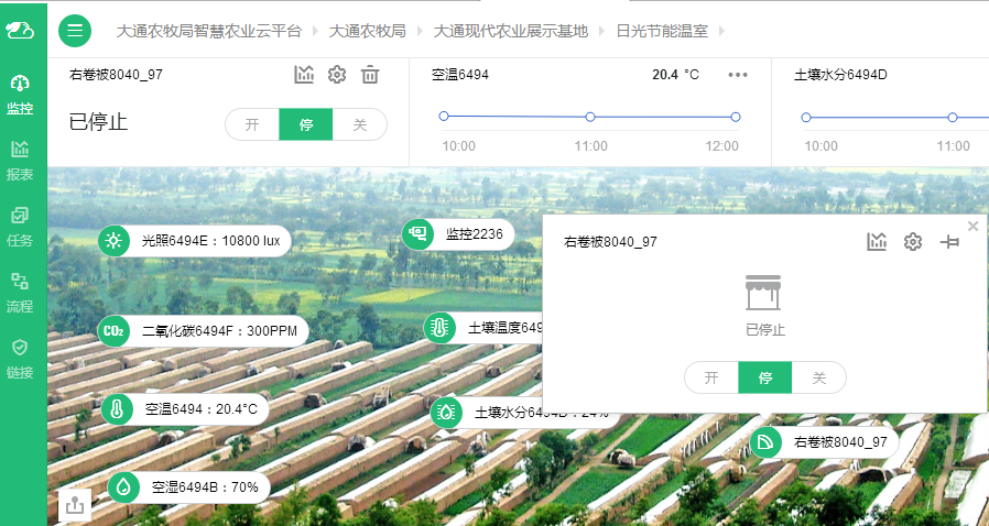 “溫室安裝了這個設(shè)備后,工作效率就高多了,在溫室外甚至在家里就可以通過手機或者電腦查看所有溫室的溫濕度、土壤的溫濕度,還可以通過攝像頭查看蔬菜的生長情況,不用總是守在溫室,更不用在幾十個溫室中來來回回奔波!惫ぷ魅藛T感嘆到。