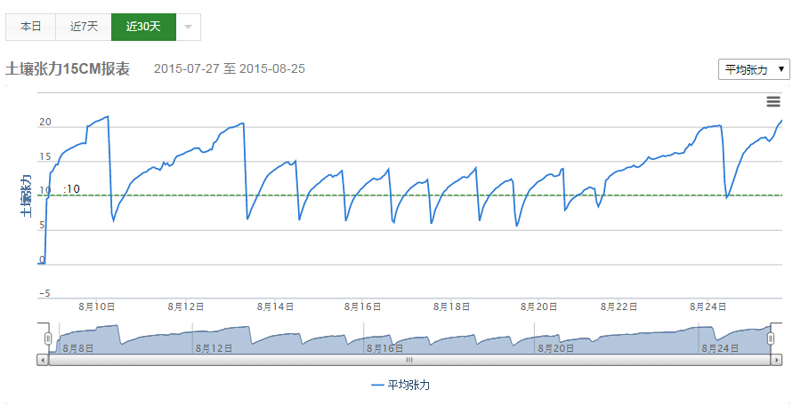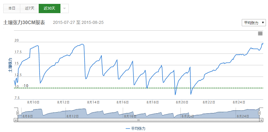 土壤張力計(jì)是現(xiàn)有高效指導(dǎo)灌溉的設(shè)備儀器。張力傳感器測的是土壤水張力,是指土壤對(duì)水的吸力,土壤愈濕,對(duì)水的吸力就愈;反之則大。當(dāng)土壤濕度增大到所有空隙充滿水時(shí),土壤水張力將降為零。換言之,此時(shí)土壤含水率達(dá)到了飽和。