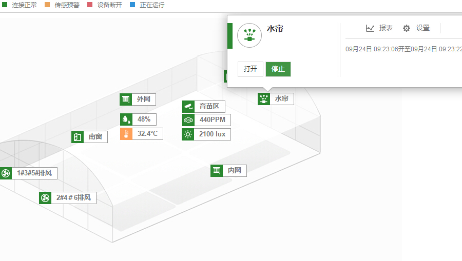 傳感器、控制系統(tǒng)與云平臺(tái)實(shí)現(xiàn)一體聯(lián)動(dòng),觸發(fā)設(shè)定條件,比如當(dāng)空氣溫度過高時(shí),系統(tǒng)則會(huì)發(fā)送預(yù)警到管理員手機(jī);同時(shí)可以進(jìn)智能設(shè)置,觸發(fā)設(shè)定條件系統(tǒng)則會(huì)自動(dòng)打開降溫設(shè)備,比如打開天窗等操作;如果沒有進(jìn)行智能聯(lián)動(dòng)設(shè)置,工作人員通過云平臺(tái),在手機(jī)或者電腦上也可以遠(yuǎn)程控制育秧大棚設(shè)備,無需趕赴育苗中心。