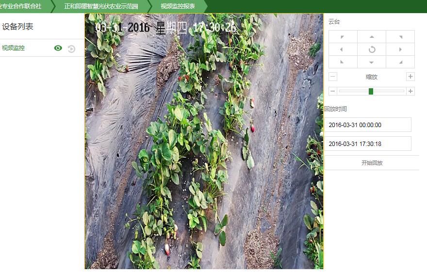 為從生產(chǎn)源頭開始監(jiān)控整個(gè)生產(chǎn)過程,保障農(nóng)產(chǎn)品品質(zhì)安全,2015年山東青島正和現(xiàn)代農(nóng)業(yè)專業(yè)合作聯(lián)合社應(yīng)用天潤智力智慧農(nóng)業(yè)云平臺(tái)智能監(jiān)控系統(tǒng),利用空氣溫度傳感器、空氣濕度傳感器、光照度、土壤溫濕度、二氧化碳濃度、高清攝像頭等傳感設(shè)備實(shí)時(shí)監(jiān)測草莓大棚的種植環(huán)境。實(shí)時(shí)監(jiān)測的環(huán)境情況數(shù)據(jù)每隔10秒鐘就上傳到“天潤智力智慧農(nóng)業(yè)云平臺(tái)”,研究所人員只要登錄手機(jī)APP或者在電腦上,就可以遠(yuǎn)程隨時(shí)隨地查看草莓種植基地的各項(xiàng)關(guān)鍵數(shù)據(jù)。所采集的數(shù)據(jù)實(shí)時(shí)上傳到天潤智力智慧農(nóng)業(yè)云平臺(tái),并快速進(jìn)行統(tǒng)計(jì)分析,解決了工作人員對(duì)數(shù)據(jù)的采集分析需求,并確保了數(shù)據(jù)采集的精準(zhǔn)、快速、全面。