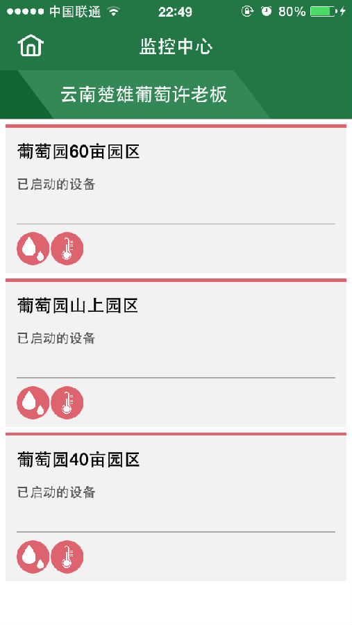 云南楚雄元謀許家君就是這眾多種植戶之一,擁有三個(gè)葡萄園區(qū),總規(guī)模約200畝。2013年選擇使用天潤(rùn)智力智慧農(nóng)業(yè)云平臺(tái),選用的功能也非常簡(jiǎn)單——實(shí)時(shí)監(jiān)測(cè)空氣溫度。