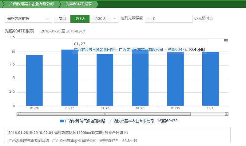 利用空氣溫度傳感器、空氣濕度傳感器、光照度、降雨量等傳感設(shè)備實(shí)時(shí)監(jiān)測(cè)火龍果種植的環(huán)境。實(shí)時(shí)監(jiān)測(cè)的環(huán)境情況數(shù)據(jù)每隔10秒鐘就上傳到“天潤(rùn)智力智慧農(nóng)業(yè)云平臺(tái)”,研究所人員只要登錄手機(jī)APP或者在電腦上,就可以遠(yuǎn)程隨時(shí)隨地查看火龍果種植基地的各項(xiàng)關(guān)鍵數(shù)據(jù)。所采集的數(shù)據(jù)實(shí)時(shí)上傳到天潤(rùn)智力智慧農(nóng)業(yè)云平臺(tái),并快速進(jìn)行統(tǒng)計(jì)分析,解決了科研人員對(duì)數(shù)據(jù)的采集分析需求,并確保了數(shù)據(jù)采集的精準(zhǔn)、快速、全面。