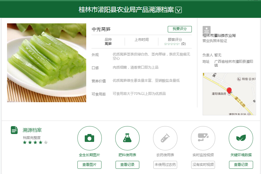借助“天潤智力農(nóng)產(chǎn)品溯源系統(tǒng)”“91溯源平臺”,灌陽縣農(nóng)業(yè)局成功實現(xiàn)對葡萄、萵筍、大米三大農(nóng)產(chǎn)品的溯源體系建立,嚴(yán)格監(jiān)控農(nóng)產(chǎn)品農(nóng)資、生產(chǎn)、加工、流通各環(huán)節(jié)。消費者通過掃描產(chǎn)品包裝上的二維碼或者條形碼,即可查看農(nóng)產(chǎn)品的基本信息(產(chǎn)品名稱、生產(chǎn)者、產(chǎn)品品種、產(chǎn)地等)、溯源檔案(全生長期圖片、肥料使用記錄、農(nóng)藥使用記錄、關(guān)鍵環(huán)境數(shù)據(jù))、產(chǎn)品認(rèn)證信息、產(chǎn)品簡介等信息,91溯源平臺給灌陽縣農(nóng)業(yè)局的優(yōu)質(zhì)生態(tài)農(nóng)產(chǎn)品一個展示的平臺,同時有力地把好農(nóng)產(chǎn)品安全關(guān),將更多優(yōu)質(zhì)、安全的農(nóng)產(chǎn)品品牌“捆綁”,為灌陽縣打造灌陽“生態(tài)農(nóng)產(chǎn)品品牌群”,打造“可溯源的灌陽”打下了堅實的基礎(chǔ)。2014年灌陽縣在在縣城大市場蔬菜檢測室共檢測蔬菜品種41個,抽檢蔬菜樣品16000個,抽檢合格率達(dá)100%。同時,為確保蔬菜的全程質(zhì)量安全,鄉(xiāng)鎮(zhèn)流動檢測站檢測蔬菜品種32個,抽檢樣品2869個,抽檢合格率達(dá)100%;蔬菜農(nóng)藥殘留例行檢測,共抽檢樣品1287個,檢測合格率99.9%。確保了全縣蔬菜從生產(chǎn)到餐桌的安全,使民眾真正吃上“放心菜”。