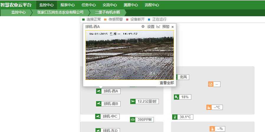 天潤智力智慧農(nóng)業(yè)云平臺(tái)可將各類型的數(shù)據(jù)在同一平臺(tái)進(jìn)行管理、監(jiān)控、分析,便于五純生態(tài)農(nóng)業(yè)的技術(shù)團(tuán)隊(duì)以及合作團(tuán)隊(duì)用于研究并指導(dǎo)水稻的種植。