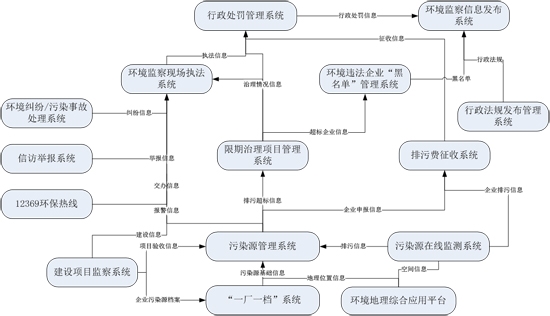 隨著環(huán)境保護信息化建設(shè)的不斷深入,環(huán)境保護業(yè)務(wù)主管部門紛紛建設(shè)了各種業(yè)務(wù)管理系統(tǒng),如污染源管理系統(tǒng)、建設(shè)項目管理系統(tǒng)、排污收費系統(tǒng)等,環(huán)境監(jiān)察人員執(zhí)行環(huán)境監(jiān)察、行政執(zhí)法的日常工作中,將不得不同時面對多個業(yè)務(wù)系統(tǒng),而且各業(yè)務(wù)系統(tǒng)之間不能信息共享和業(yè)務(wù)流程的互動,部分阻礙了環(huán)境監(jiān)察管理的工作發(fā)展。