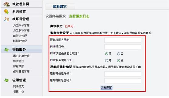 填寫搬家信息后點(diǎn)擊“開啟搬家”,郵箱搬家功能便開啟成功。
