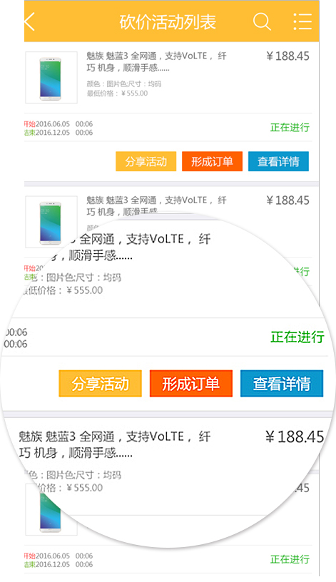 3、發(fā)起活動(dòng)的顧客,可以即時(shí)的看到幫他砍價(jià)的朋友是誰(shuí),砍了多少錢,且需砍到商家設(shè)定的最低價(jià)時(shí)才能購(gòu)買。