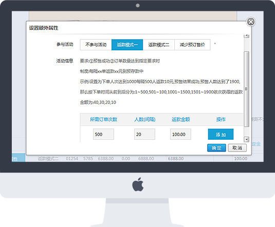 3)湊單降價:不同的總單量預(yù)售價不同(PS:返款--返款返到預(yù)存款,退單不改預(yù)售價)