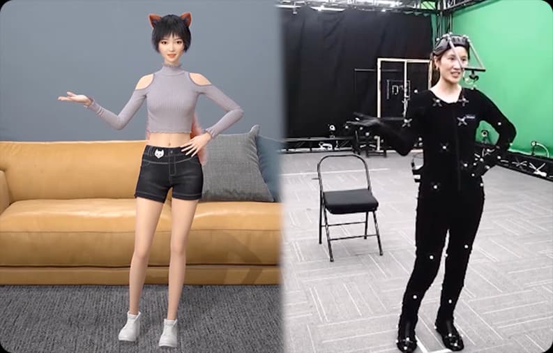 可實(shí)現(xiàn)元宇宙人物高質(zhì)量的實(shí)時(shí)直播,多位元宇宙人物同時(shí)、實(shí)時(shí)直播、元宇宙人物與真人實(shí)時(shí)同臺(tái)互動(dòng)、元宇宙人物與真人遠(yuǎn)程連麥互動(dòng)等多種直播形式。