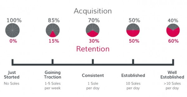 在了解了顧客獲取和留存各自的重要性,我們可以開始研究要怎么分配預(yù)算。我們必須讓這件事同時(shí)進(jìn)行,會(huì)變動(dòng)的只有分配在上面的金額。你的分配策略應(yīng)該或由兩個(gè)因素主導(dǎo):商店的生命周期和產(chǎn)品的定位。