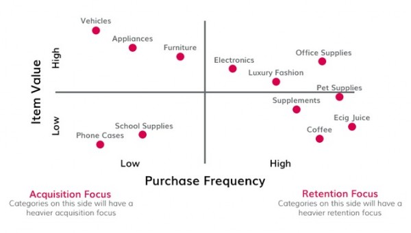 通常來說,當(dāng)你的商品越靠近右側(cè),你的客戶留存策略就越重要。然而,千萬不要因?yàn)檫@樣就忽略了持續(xù)獲取新的顧客。