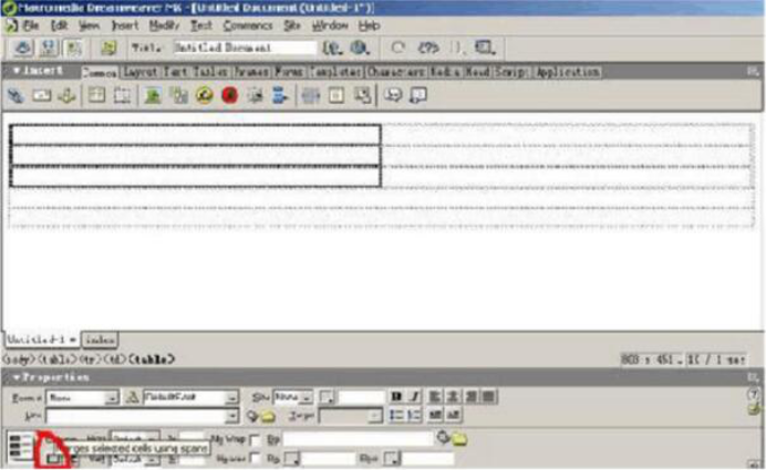 插入表格的時(shí)個要注意對比原h(huán)tm文件中的內(nèi)容,思考為什么這樣做;接下來在第二行中插入一個二行二列的表格,按上面的方法合并左邊的格子,并在右邊格子的第一行插入一個一行五列的表格如圖示:
