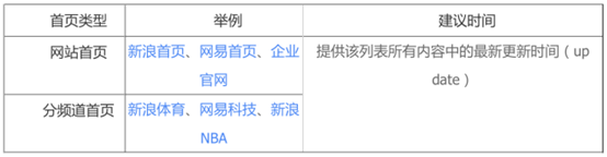 比如網(wǎng)站的首頁或者是分頻道首頁,就像一些新聞門戶網(wǎng)站,這類型的特征是內(nèi)容較多,鏈接也較多,內(nèi)容更新較快,只需要提供最新的更新時間就行。(如下圖示)