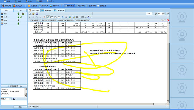 9、電子白板,使用第三方中間件(msoffice),可以打開本地文件或服務器上的文件進行閱覽,在會議期間參會者可以選擇廣播式和非廣播式,廣播式需要鎖定其他參會者的顯示器,其他參會人員可以看到發(fā)廣播人進行會議批注。