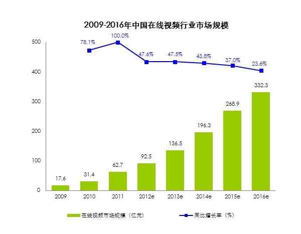 在國內(nèi),據(jù)iUserTracker監(jiān)測數(shù)據(jù)顯示,在線視頻在2012年第二季度已經(jīng)超越搜索服務和社區(qū)交友,成為中國用戶規(guī)模最大的網(wǎng)絡服務,2012年5月用戶規(guī)模達到4.2億。艾瑞的分析報告指出,2012年視頻行業(yè)整體市場規(guī)模達到92.5億元,同比2011年增長了47.6%,而且未來還會以30%以上的速度繼續(xù)增長。