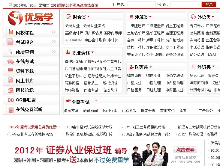 優(yōu)易學(xué)(www.youyixue.com)網(wǎng)站創(chuàng)辦于2007年6月,在教育部基礎(chǔ)教育司相應(yīng)中央提出的加強(qiáng)大學(xué)生思想文化道德建設(shè)的號召下成立,本著教育為己任,不斷開拓大學(xué)生的自身修養(yǎng)和文化水平,是目前國內(nèi)最大的教育考試類網(wǎng)站之一,同時我們是中東部地區(qū)訪問量最大的教育類網(wǎng)站,為谷歌全球新聞中心一萬家合作伙伴之一,24小時不間斷為大家發(fā)布教育考試資訊…