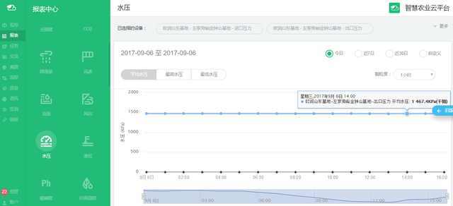 通過在泵房安裝水壓、流量傳感器,管理員可隨時隨地在手機上查看泵房的水壓和流量。因為園區(qū)較大,需要對水壓進行實時監(jiān)測,確保能夠灌溉到園區(qū)的每一個角落。對流量的實時監(jiān)測,則可整體掌握園區(qū)的灌溉用水情況。相較于以往的人工測量,大大提高了工作效率,也提高了數(shù)據(jù)精準度,確保灌溉作業(yè)的細致到位。