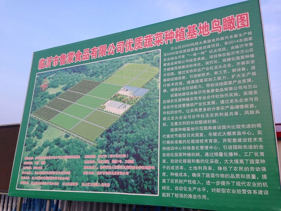 臨沂市魯蒙食品有限公司優(yōu)質(zhì)蔬菜種植基地是魯蒙食品投資承建的2014年國(guó)家農(nóng)業(yè)綜合開發(fā)“一縣一特”試點(diǎn)項(xiàng)目。項(xiàng)目在臨沂市山蘭區(qū)方城鎮(zhèn)西部建設(shè)標(biāo)準(zhǔn)化、現(xiàn)代化、規(guī);卟朔N植示范園。示范園建設(shè)國(guó)內(nèi)比較先進(jìn)的現(xiàn)代高能節(jié)能型日光溫室、冬暖式大棚育苗中心,實(shí)行高標(biāo)準(zhǔn)集約化裁培技術(shù)育苗。引進(jìn)國(guó)際先進(jìn)的全自動(dòng)化蔬菜種植機(jī)械,通過精量化播種、工廠化育苗、自動(dòng)化移栽和集約化采收,提高蔬菜種子的成活率、土地利用率,降低農(nóng)民的勞動(dòng)強(qiáng)度、種植成本,確保蔬菜作物的品質(zhì)和質(zhì)量,提高農(nóng)民收入,提升現(xiàn)代農(nóng)業(yè)的機(jī)械化、自動(dòng)化生產(chǎn)水平。