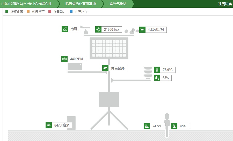 利用土壤溫度傳感器、土壤濕度傳感器、空氣溫度傳感器、空氣濕度傳感器等傳感設(shè)備實(shí)時(shí)監(jiān)測(cè)育苗中心的環(huán)境,并借助部署在關(guān)鍵監(jiān)控點(diǎn)的高清攝像頭,實(shí)時(shí)查看育苗的長(zhǎng)勢(shì)。