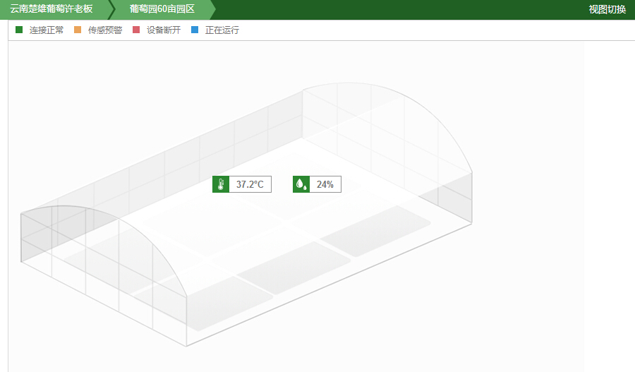 云南楚雄元謀許家君就是這眾多種植戶之一,擁有三個(gè)葡萄園區(qū),總規(guī)模約200畝。2013年選擇使用天潤(rùn)智力智慧農(nóng)業(yè)云平臺(tái),選用的功能也非常簡(jiǎn)單——實(shí)時(shí)監(jiān)測(cè)空氣溫度。