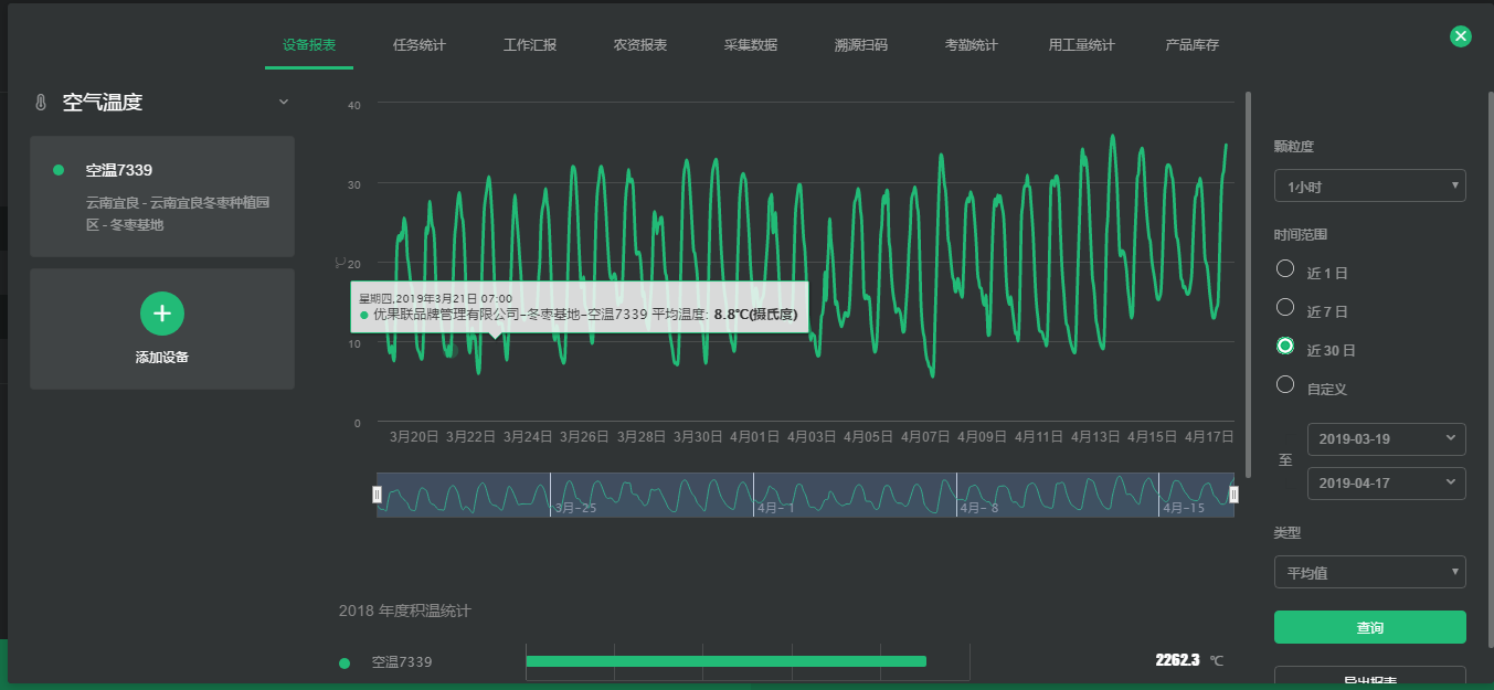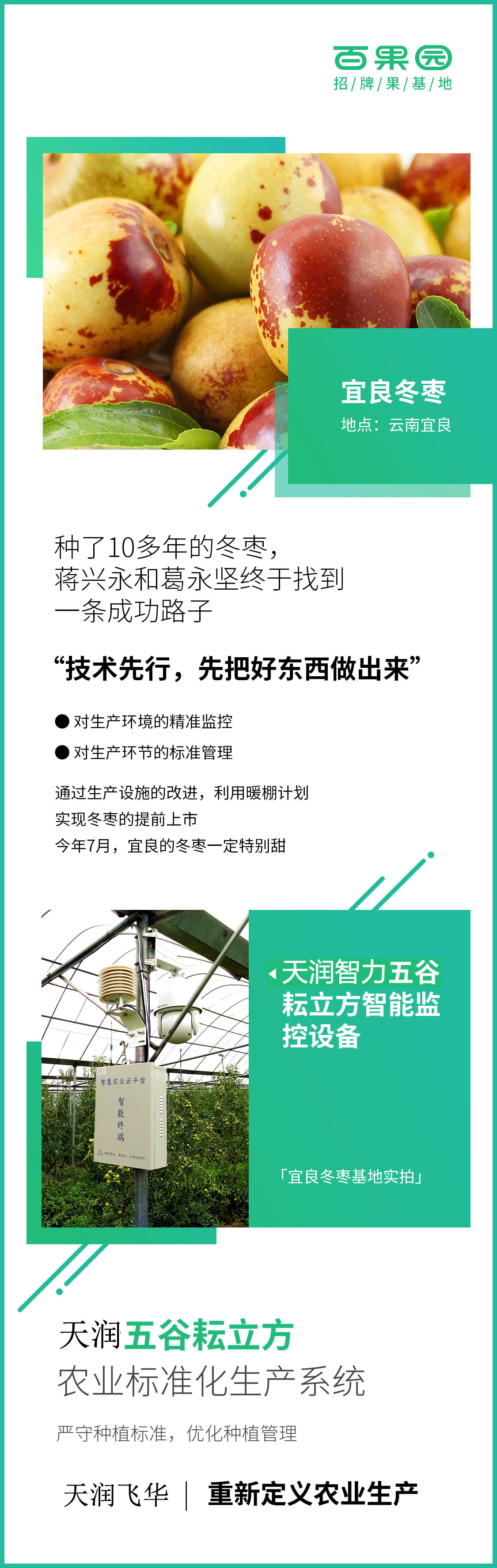 2018年,宜良冬棗基地引入天潤智力“五谷耘立方標(biāo)準(zhǔn)化生產(chǎn)管理系統(tǒng)”,輔助專家進行標(biāo)準(zhǔn)化種植管理。