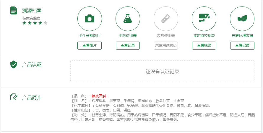 得益于天潤(rùn)智力智慧農(nóng)業(yè)監(jiān)控系統(tǒng),消費(fèi)者只要在手機(jī)或者平板電腦安裝了天潤(rùn)智力智慧農(nóng)業(yè)云平臺(tái),從鐵皮石斛栽培的第一天起,消費(fèi)者就可以隨時(shí)隨地跟蹤生產(chǎn)過(guò)程,通過(guò)農(nóng)場(chǎng)視頻、實(shí)時(shí)采集的種植環(huán)境數(shù)據(jù),了解巴馬群山環(huán)繞的田地里大棚的土壤溫度、空氣濕度、光照情況、鐵皮石斛的長(zhǎng)勢(shì),親歷生產(chǎn)全過(guò)程,真正做到全程掌控,提前預(yù)定,大幅提升用戶粘性。同時(shí)天潤(rùn)智力農(nóng)產(chǎn)品溯源系統(tǒng),給每一株“巴馬蘭”鐵皮石斛制作了自己唯一的身份(二維碼),完整記錄這株石斛的產(chǎn)地、種植、收割、加工、倉(cāng)儲(chǔ)、質(zhì)檢等全部信息,消費(fèi)者只要掃描產(chǎn)品二維碼,就能快速地查看“巴馬蘭”鐵皮石斛的詳細(xì)信息。豐旭農(nóng)業(yè)科技有限公司利用天潤(rùn)智力智能農(nóng)業(yè)監(jiān)控系統(tǒng)以及農(nóng)產(chǎn)品溯源平臺(tái),在消費(fèi)者和每一位客戶心中,建立并展示了綠色、有機(jī)、安全的良好品牌形象,最大限度獲取了消費(fèi)者的信賴。