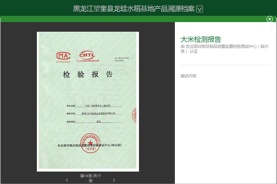 對于“好食品”,龍蛙農(nóng)業(yè)的定義是:綠色、有機(jī)、安全,有標(biāo)準(zhǔn)、可追溯。龍蛙農(nóng)業(yè)具有得天獨(dú)厚的地里優(yōu)勢。其種植基地位于黑龍江省級自然保護(hù)區(qū)“西洼荒自然保護(hù)區(qū)”內(nèi),水草豐美,野鳥翩躚,具有原生態(tài)的環(huán)境特質(zhì),是黑龍江省目前少有的幾處天然氧吧之一,也是世界三大寒地黑土帶之一的松嫩平原核心區(qū)。這里的水,是天然圣水;這里的土,號稱黑色寶石。為了讓全國的消費(fèi)者都能知曉每一粒龍蛙大米的“前世今生”,了解每一粒大米從春天一粒種子落地開始,到秋天收獲以及加工配送的全過程,2014年龍蛙農(nóng)業(yè)正式在各大生產(chǎn)基地投入使用“天潤智力農(nóng)產(chǎn)品溯源系統(tǒng)”,通過可追溯系統(tǒng)實(shí)現(xiàn)質(zhì)量管控,打造全國消費(fèi)者“看得見”的可追溯產(chǎn)品。