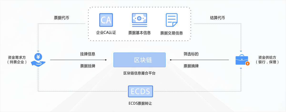 3.?dāng)?shù)據(jù)存證:資產(chǎn)端、資金端的公鑰地址與CA綁定記錄在區(qū)塊鏈上,可作為身份認(rèn)證和資產(chǎn)證明;包含所有交易的區(qū)塊哈希經(jīng)過第三方鑒定中心簽名后,備份在多條區(qū)塊鏈上,可在發(fā)生糾紛時(shí),輕松實(shí)現(xiàn)司法鑒定;票據(jù)信息、參與方信息、交易信息記錄在區(qū)塊鏈上,所有數(shù)據(jù)均不可篡改,交易線路一目了然。