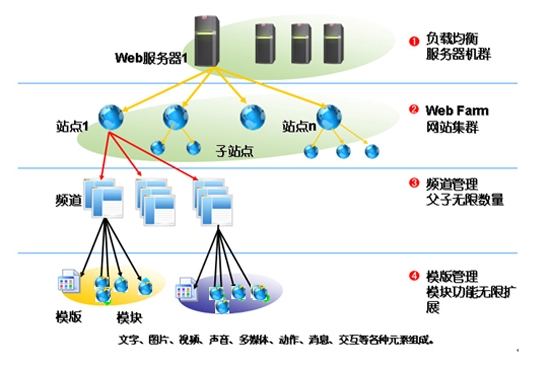 為了實(shí)現(xiàn)多個(gè)不同站點(diǎn)、不同地域或不同部門站點(diǎn)的統(tǒng)一管理,G-ONE WCM?門戶企業(yè)門戶平臺(tái)提供了多站點(diǎn)集群管理能力,方便進(jìn)行集團(tuán)站點(diǎn)與分支站點(diǎn)的統(tǒng)一維護(hù)管理,以及站點(diǎn)集群的管理,并采用先進(jìn)技術(shù),實(shí)現(xiàn)基于主機(jī)機(jī)群的網(wǎng)站群管理。
