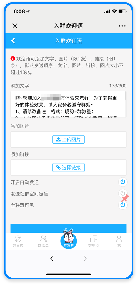 | 一鍵設(shè)置 | 入群歡迎語、關(guān)鍵詞、群簽到;敏感詞、鏈接移除廣告戶等設(shè)置共享、多群去重 |