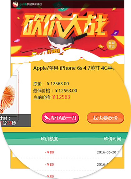 3、發(fā)起活動(dòng)的顧客,可以即時(shí)的看到幫他砍價(jià)的朋友是誰(shuí),砍了多少錢,且需砍到商家設(shè)定的最低價(jià)時(shí)才能購(gòu)買。