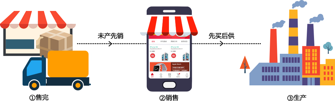未產(chǎn)先銷 ,降低經(jīng)營風(fēng)險,為商家提供先買后供的生產(chǎn)模式,掌握市場需求生產(chǎn),避免資源浪費。