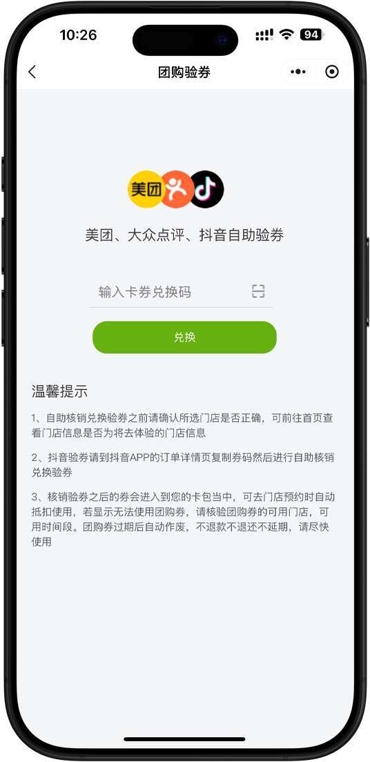 支持美團(tuán)、大眾點(diǎn)評、抖音核銷
