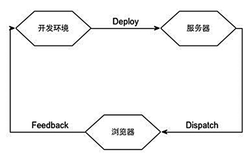通過這個閉環(huán),特別是從瀏覽器回到開發(fā)環(huán)境這個環(huán)節(jié),前端工程師會通過具體產(chǎn)品和終端用戶進行頻繁的信息交換,在最終的產(chǎn)品中進行信息收集,再將信息轉(zhuǎn)化為指標(biāo)或其他能夠衡量產(chǎn)品質(zhì)量的形式,以此指導(dǎo)工作方向。