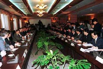 3月28日下午4時許,中國與歐盟就中國加入世界貿(mào)易組織的新一輪談判在外經(jīng)貿(mào)部談判大樓舉行。圖為雙方談判現(xiàn)場。