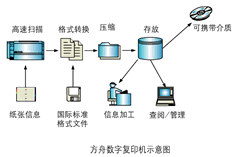 通過“數(shù)字復(fù)印機(jī)”配置的高速掃描設(shè)備及掃描軟件可將傳統(tǒng)的紙介質(zhì)信息以每分鐘15—75頁(yè)(正反雙面)的速度進(jìn)行快速掃描,使文檔數(shù)字化工作變得輕松簡(jiǎn)單。