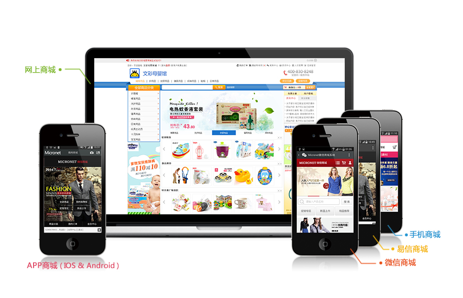 1、擁有自己獨立的官方商城 2、擁有自己獨立的微信商城 3、擁有自己獨立的易信商城