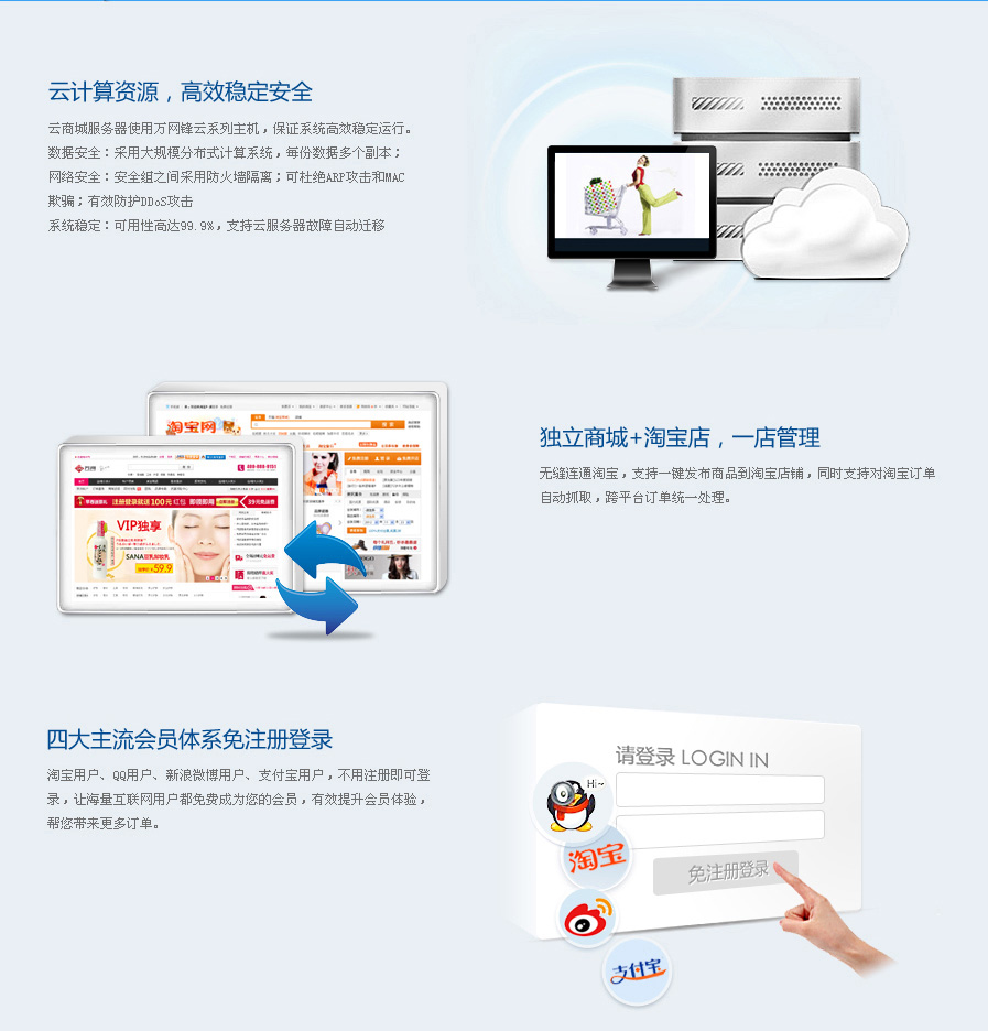 • 云商城服務(wù)器使用輕云系列主機(jī),保證系統(tǒng)高效穩(wěn)定運(yùn)行。