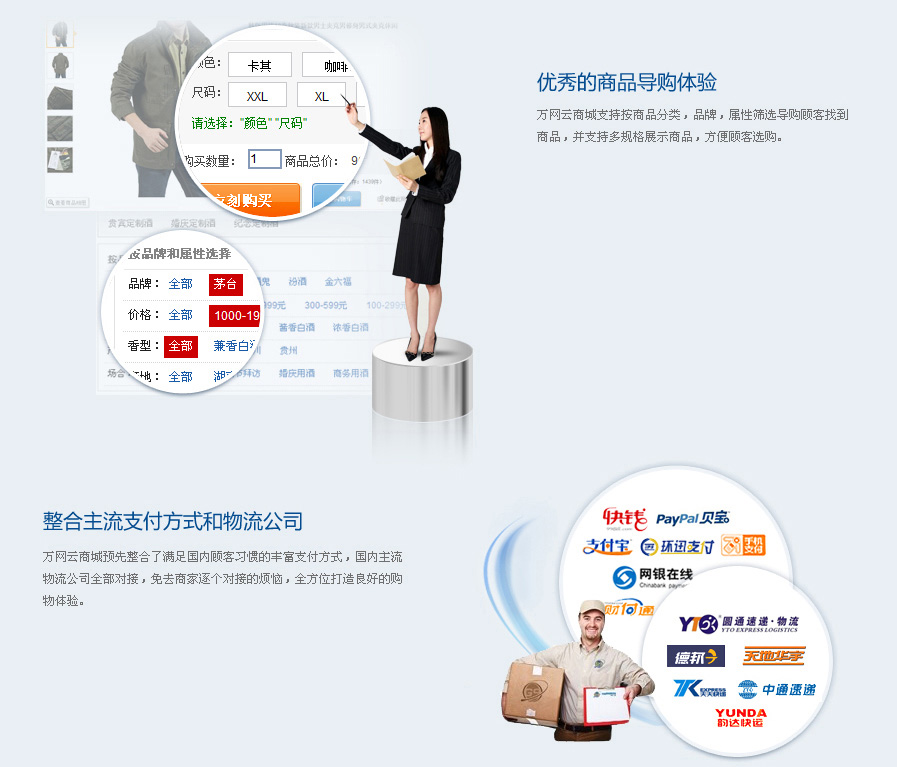• 整合多種支付與物流接口,提供各類營(yíng)銷組件及全面的SEO解決方案,后臺(tái)管理方便易用